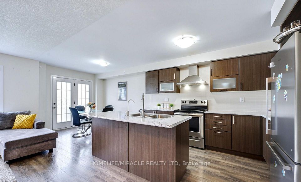 Stunning home with Spacious Size 3 Bedrooms With Finished walkout Basement with separate entrance. Features Include Laminate Flooring On Main Level & Broadloom On Upper & Lower Levels, Open Concept Living/Dining/Kitchen Areas W/ S/S Appliances, Granite Counter Tops, Centre Island W/ Breakfast Bar, Double Kitchen Sinks, Double Door W/O To Porch, 2nd Level Spacious Laundry, Oak Staircase, Soaker Tub In Master Ensuite.